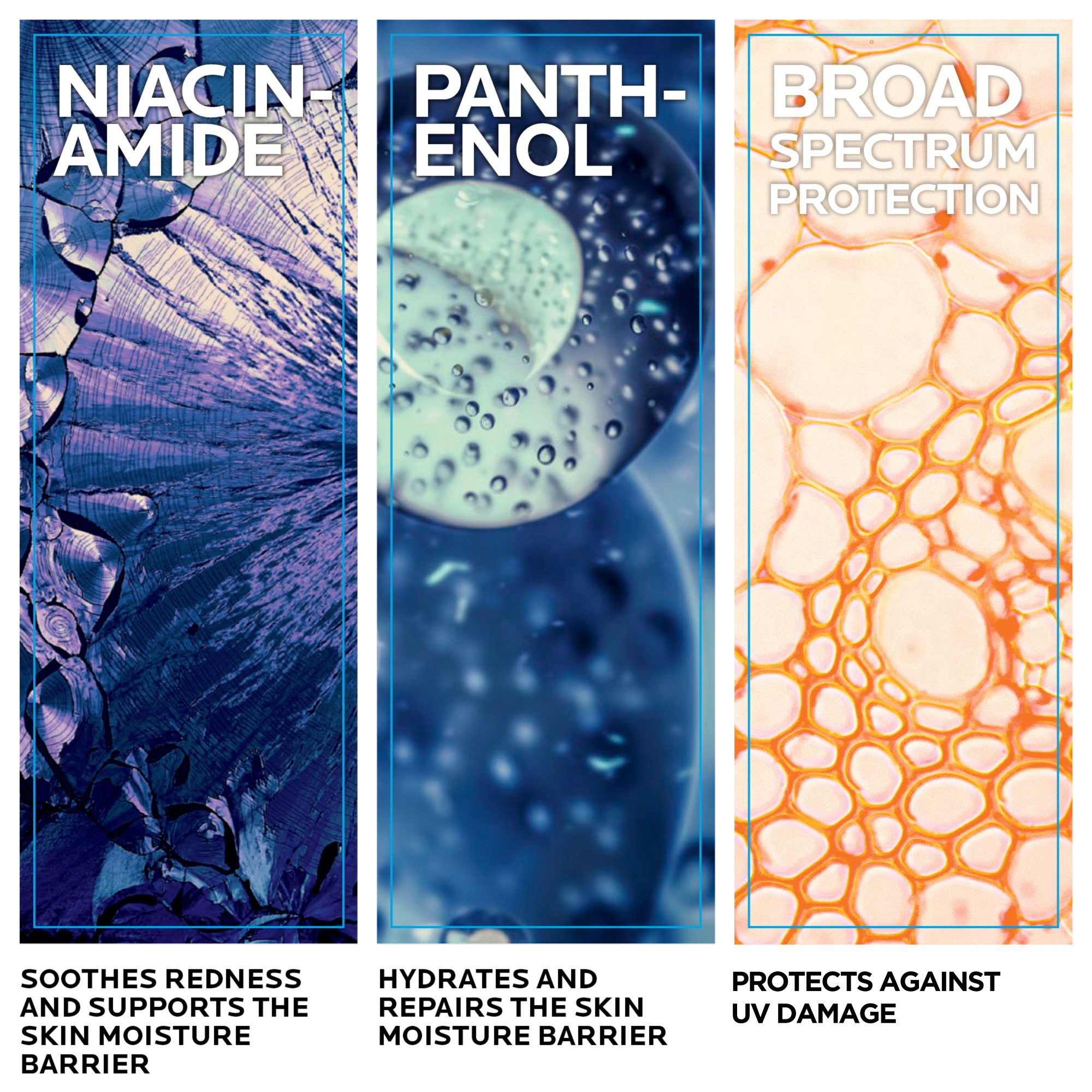 NEW La Roche-Posay Anthelios KA+ Sunscreen SPF50+ can aid in the prevention of Solar Keratosis and may reduce the risk of some skin cancers. Solar Keratosis can appear as persistent raised, rough, dry and scaly patches or lesions on areas of the skin with high sun exposure (ie. Face, hands, ears, lips). They are the first signs of skin cancer development and can also vary in colour from skin colour to red pigmented. Many harmful skin cancers can begin as a solar keratosis/actinic keratosis lesion, so it is important to monitor the skin for any changes to moles or lesions by booking a regular full body skin check with a dermatologist or specialist GP. Solar keratosis most commonly occurs in individuals aged 40+, with light/fair skin tones, weakened immune systems, occupations that have them working outside, sensitive skin post-surgery & genetic predispositions to skin cancer. Men are also 3x more likely to develop Solar Keratosis in their lifetimes. Always consult a dermatologist or GP if you have a skin concern. This sunscreen has a hydrating formula with broad spectrum SPF50+, contains an innovative UV filtering system to provide very high UVA and UVB protection, and is enriched with Niacinamide and Panthenol to aid in repairing and soothing the skin moisture barrier, which also helps to protect against the oxidative stress induced by pollution. Dermatologically tested for sensitive skin, Anthelios KA+ has a melt-in cream texture that leaves no white marks and is non-greasy on the skin.