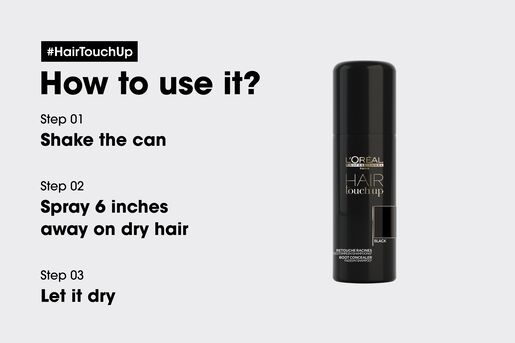 The L'Oréal Professionnel root spray comes in six shades, Dark Blond, Light Brown, Brown, Black, Mahogany and Warm Blond. Formulated with make-up pigments, it blends seamlessly with your hair to give great coverage. It is easy to use, it dries instantly and it washes out in just one shampoo* *Instrumental test with Hair Touch Up before application vs after application vs after application and 1 shampoo with Pro Classic shampoo.