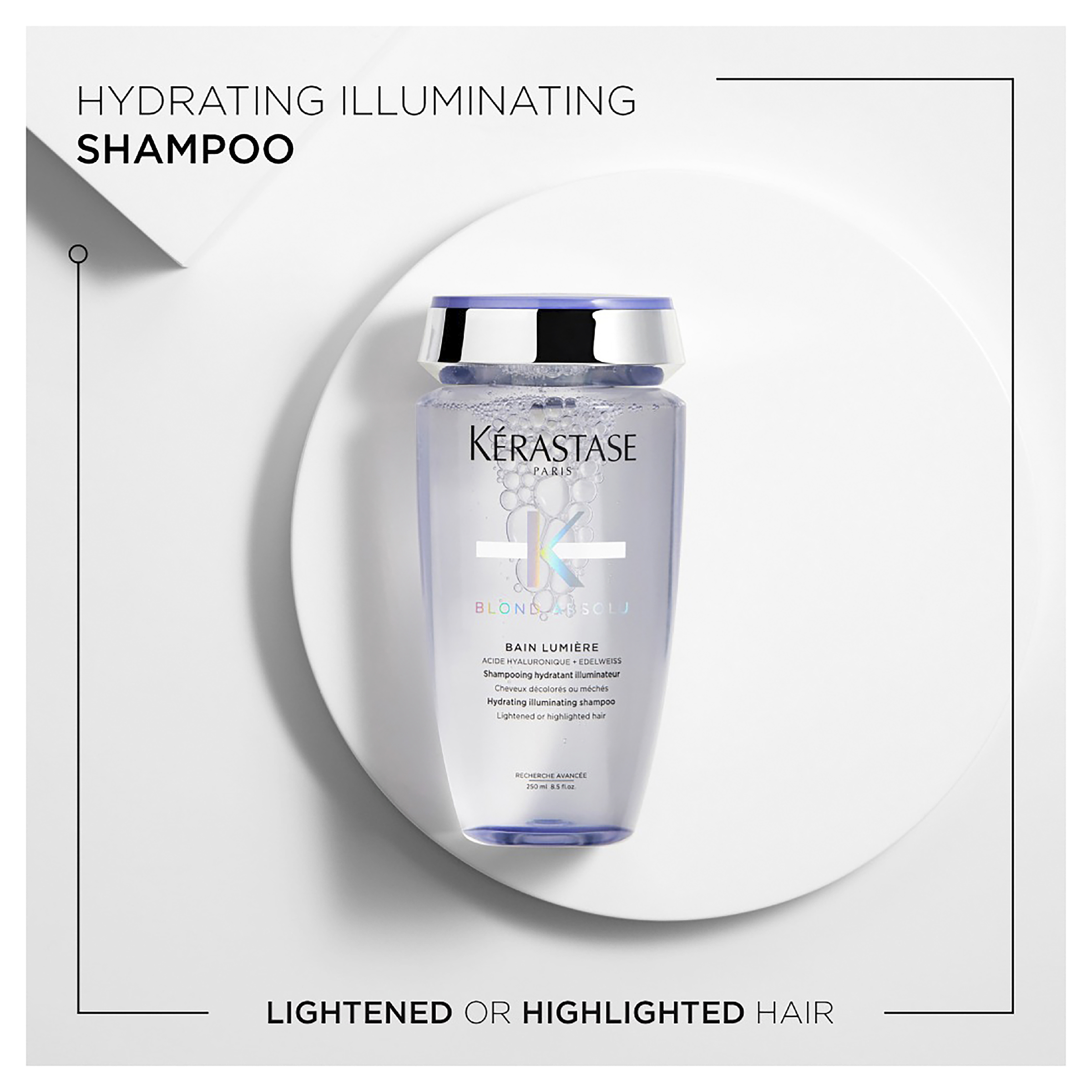 Hydrating illuminating shampoo for lightened or highlighted hair to gently cleanse the fibre, leaving hair light and luminous.