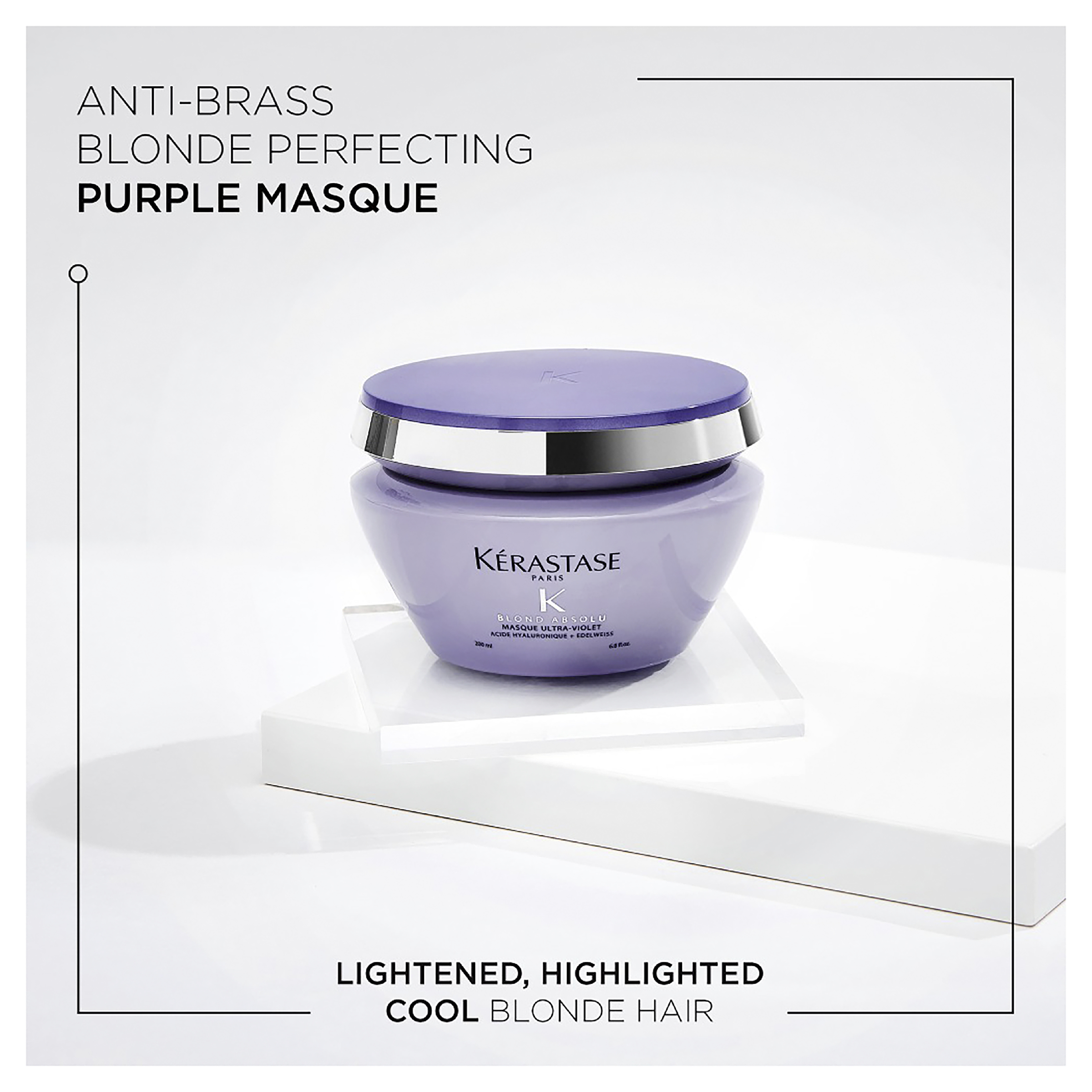 Ideal for lightened, highlighted cool blonde hair in need of neutralisation, this rich purple mask removes unwanted yellow undertones and brassiness, while deeply hydrating and restoring hair strands. The formula soothes hair, protecting it from daily oxidation and pollution particles. This non-staining hair mask can be used once a week, or as often as needed to neutralise brassy tones and keep your blonde hair luminous & cool. *Allergy alert test before use.
