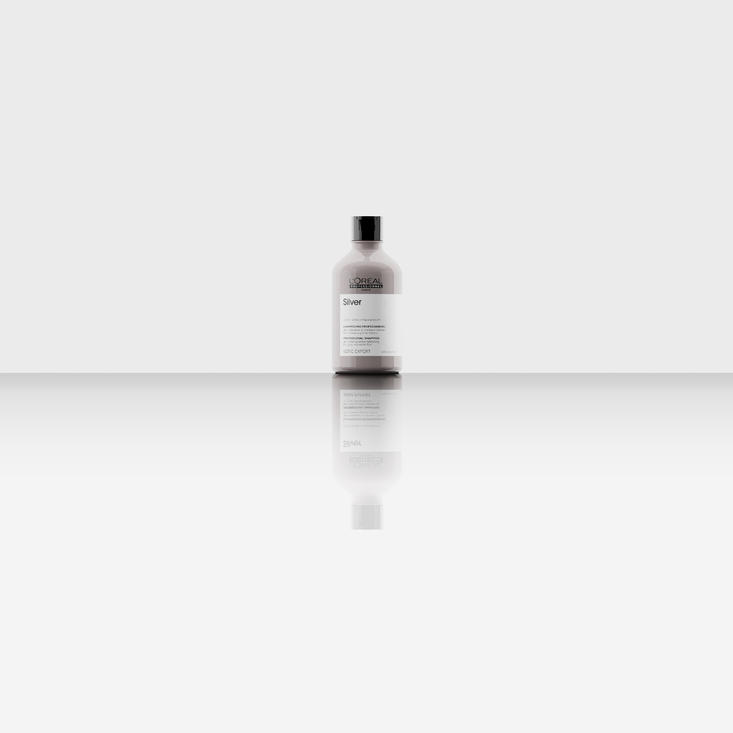 L'Oréal Professionnel's Silver Shampoo is a neutralizing system. This innovative deep purple shampoo uses magnesium and anti-yellowing agents to help counteract unwanted brassy tones of pre-lightened, tinted or highlighted hair whilst deeply softening each strand from root-to-tip. The shampoo delivers toning results while nourishing and protecting the hair fiber and boosting shine. Give this one a go if you have grey, white, metallic or platinum blonde hair and want to keep the brassy tones at bay. For grey and white hair types. Size: 300ml Fragrance: N/A KEY FEATURES • Neutralizing • Deep purple colour • Powered by Magnesium • Contains anti-yellowing agents • Counteracts brassy tones in hair • Softens hair from root to tip • Nourishes and boosts shine • Protects hair fiber
