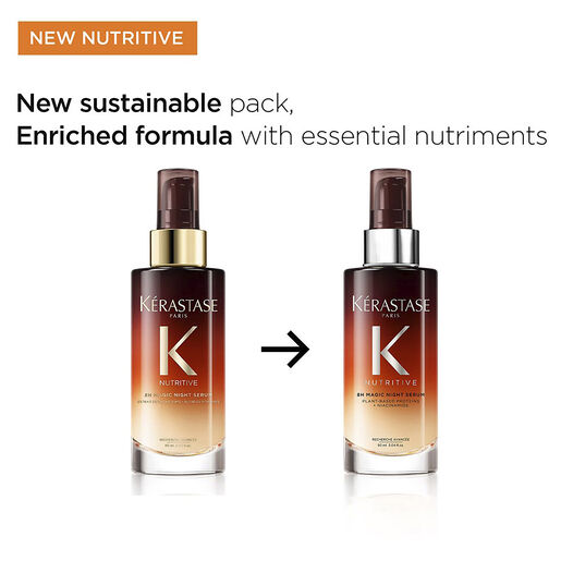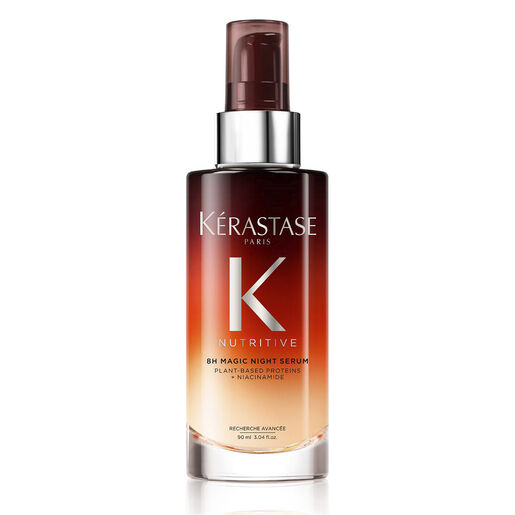8H Magic Night Serum by Kérastase is a beauty sleep high nutrition serum for dry hair. This overnight hair treatment contains anti-dryness polymers for immediate care with a light and non-greasy finish. It also delivers a dose of essential nutrients that boost the formula’s ability to nourish and reinforce the hair.