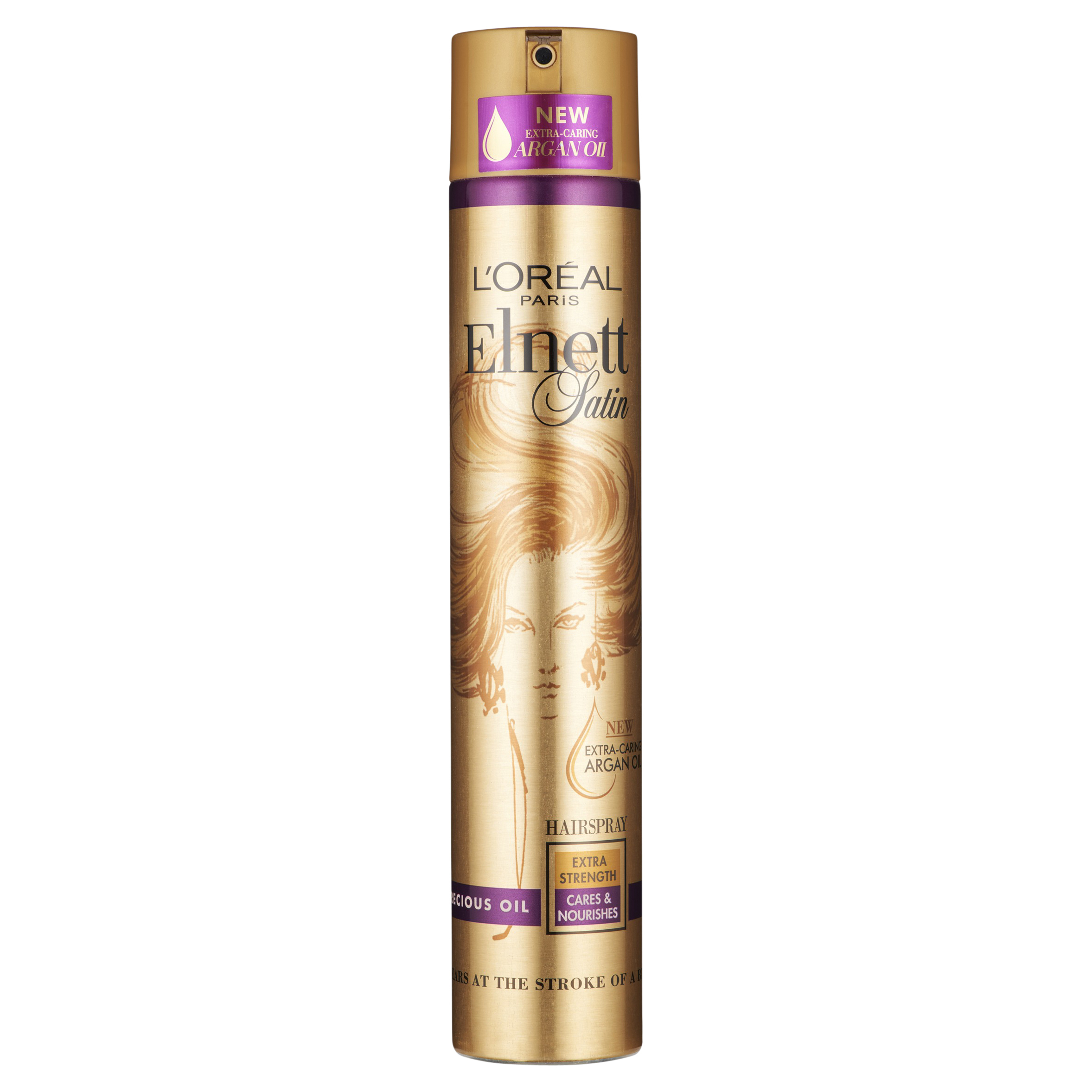 L’Oréal Paris Elnett Satin Extra-Caring hairspray infused with luxurious Argan Oil provides an extra strong hold for your hair style, whilst nourishing and lifting your hair. Irresistable light-weight mist.