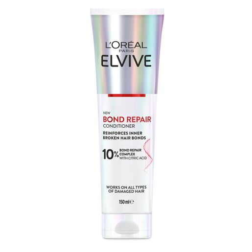 L'Oréal Paris Elvive Bond Repair Conditioner Conditioner is powered by citric acid to penetrate beneath the hair surface, reinforcing broken hair bonds while improving hair manageability and softness.