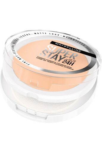 Superstay 24H Hybrid Powder Foundation, up to 24H of medium-full coverage. Soft-matte finish, weightless feel. Non-stop comfort. Sweat-proof. Water-proof. Transfer-proof. No caking, no patchiness.