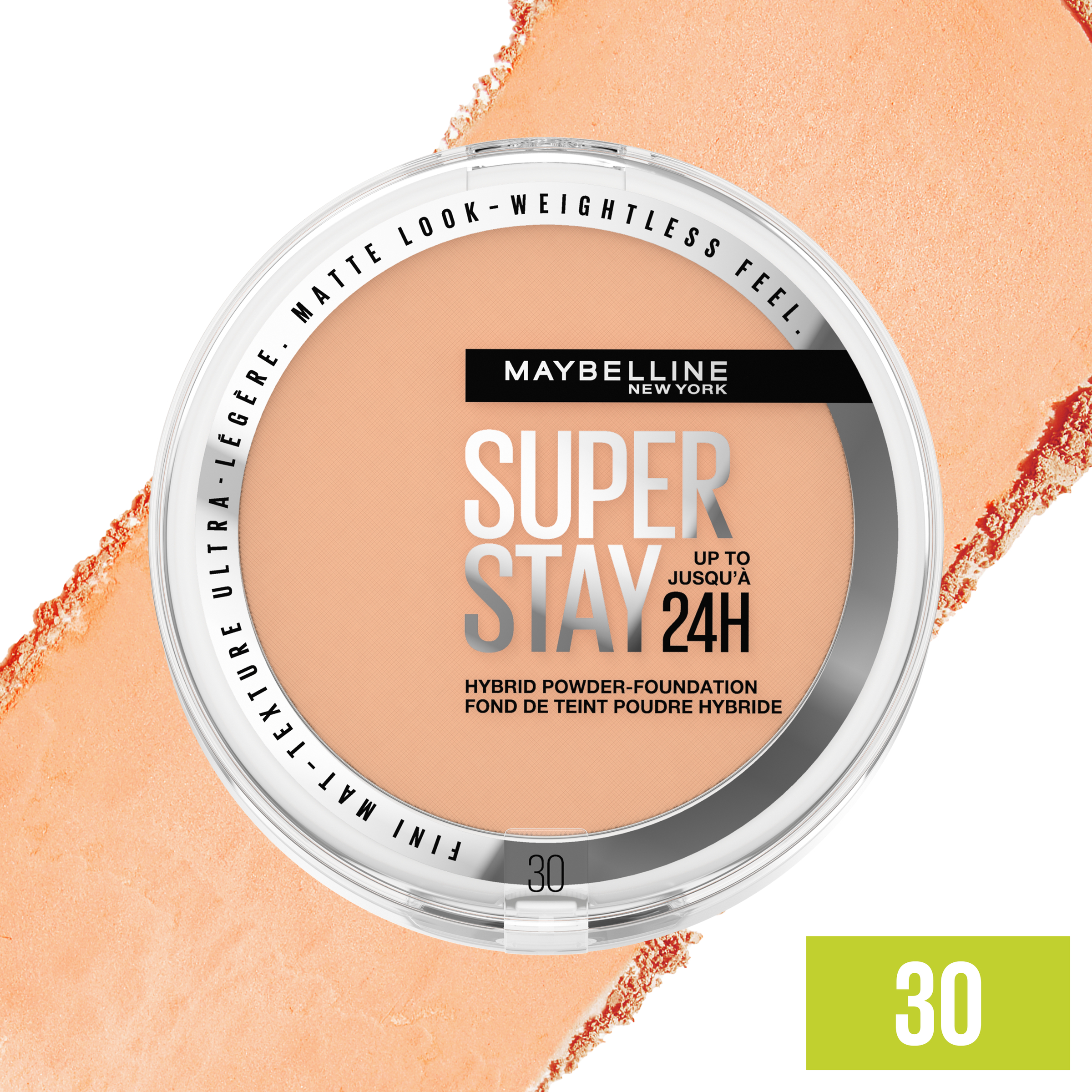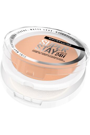 Superstay 24H Hybrid Powder Foundation, up to 24H of medium-full coverage. Soft-matte finish, weightless feel. Non-stop comfort. Sweat-proof. Water-proof. Transfer-proof. No caking, no patchiness.