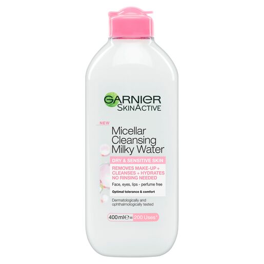 Garnier Micellar Cleansing Milky Water removes impurities and make-up without drying out your skin. Combines the efficacy and lightness of micellar cleansing water with a touch of milk for cleansed, make-up free and hydrated skin.