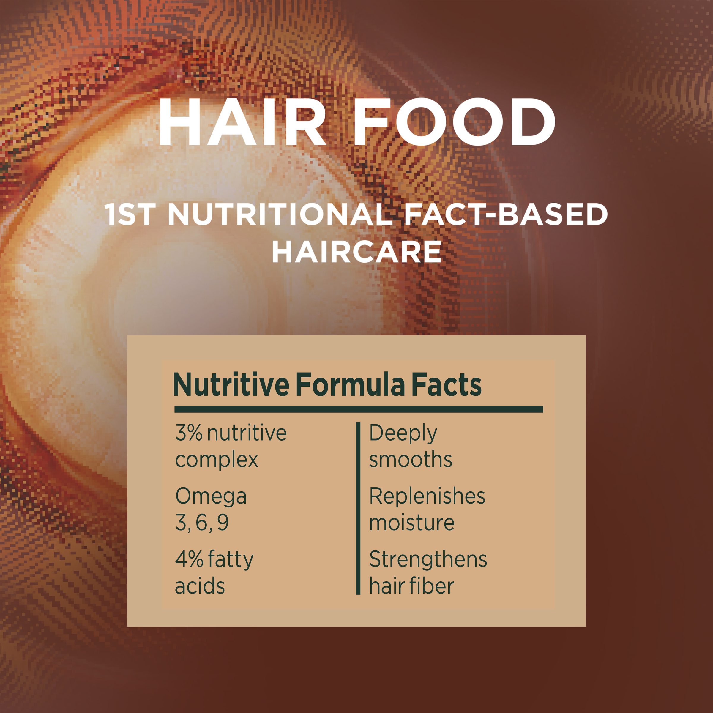 Garnier Fructis Macadamia hair food Conditioner, Smooths frizzy dry hair, 48H anti-frizz, first nutritional fact-based haircare, 350ml, No silicone, No artificial colourants, 97% natural origin ingredients, Cruelty Free, Vegan, Made of 100% recycled plastic.