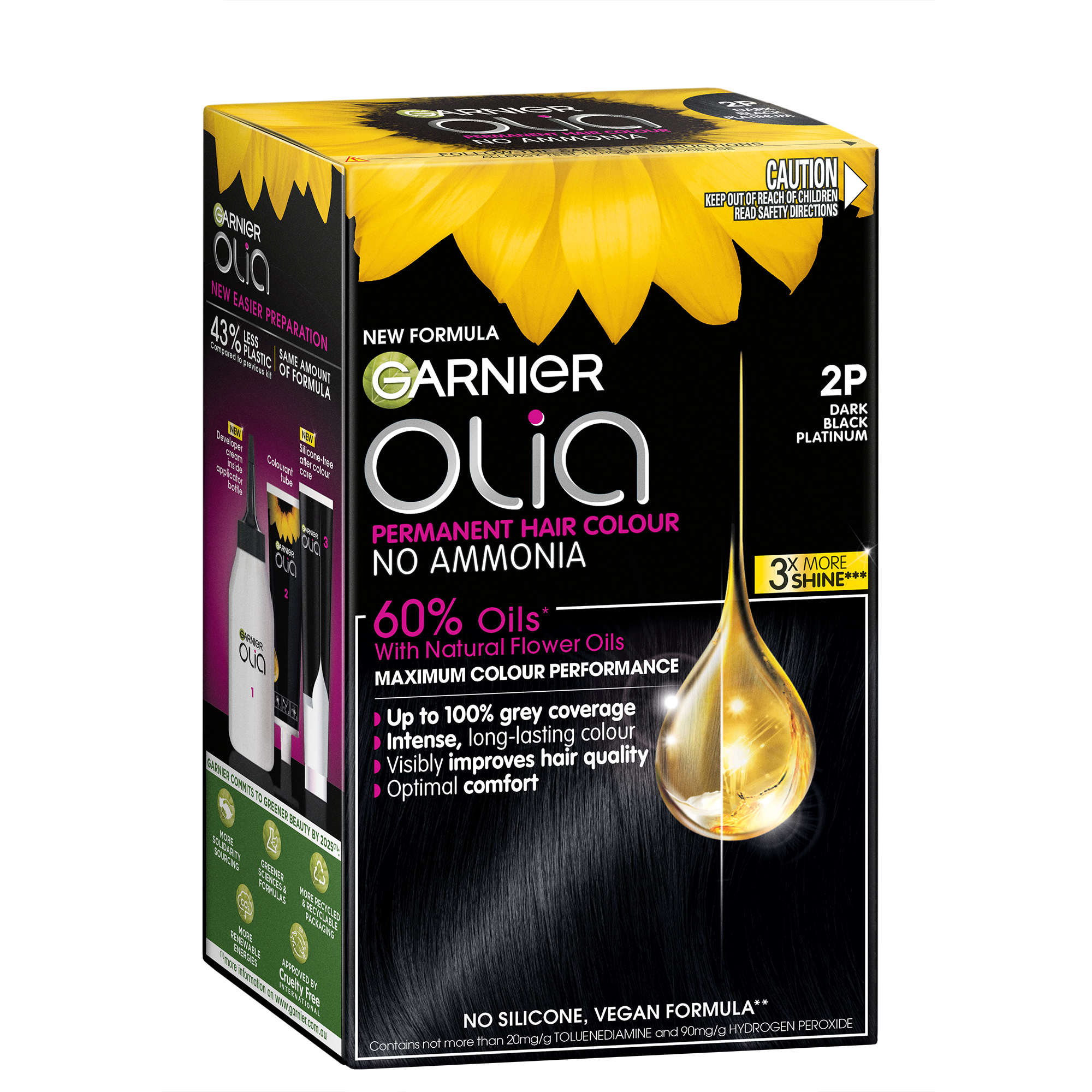 Garnier Olia 2P Platinum Black Permanent Hair Colour No Ammonia, 60% Oils