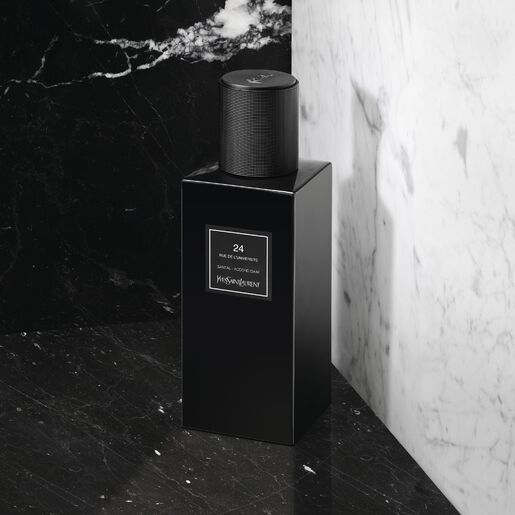 The Le Vestiaire Des Parfum Edition Couture is a collection of fragrances inspired by emblematic addresses of Yves Saint Laurent Couture house. Le Vestiaire Des Parfums Edition Couture 24 Rue de l'Université Eau de Parfum. The tension between the velvety Suede accord and the creamy Sandalwood gives birth to an intriguing fragrance. The contrast between these noble ingredients reflects the serenity and the focused atmosphere of the white wood-panelled studios of the 24 Rue de l’Université. The studios of the house of Saint Laurent are now located at this address. This is the 24 Rue de l’Université, one of the emblematic addresses of Yves Saint Laurent’s Couture house, a 17th century town house formerly known as the Hôtel de Senecterre. This fragrance embodies one of the Couture house’s emblematic addresses which mark out the creation of a collection. Fragrance Notes: Sandalwood, Incense, Daim & Cedar