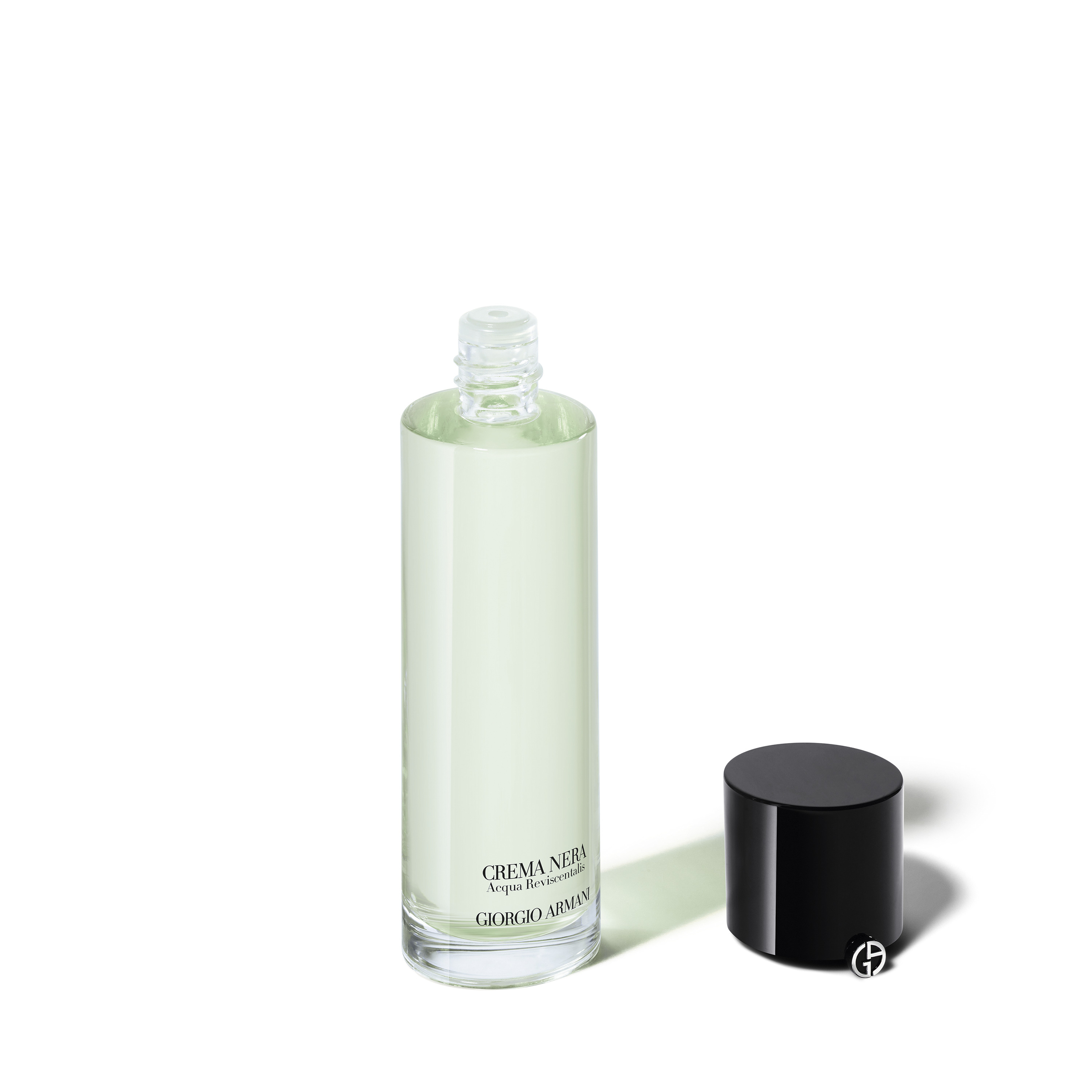 Reviving treatment lotion fusing Reviscentalis™ and glycolic acid, revitalizing skin daily for a fresh, brightened complexion and refined texture. Aqua Reviscentalis™ combines glycolic acid with Reviscentalis™, an extract from one of the most powerful resurrection plants that is able to revive after years of desiccation with just a few drops of water to create a fresh, glow reviving treatment lotion. It revitalizes skin daily, revealing a high-class quality. This potent, watery formula is quickly absorbed, delivering an exceptional feeling of hydration. Day after day, the complexion appears clarified, brightened and skin tone more even. Skin texture is refined with the appearance of pores and fine lines visibly reduced. Apply Acqua Reviscentalis twice a day on clean, dry skin as the first step of Crema Nera skincare ritual to prepare skin for all of its benefits. Avoid the eye contour area. Avoid sun exposure. Use a daily photo-protection product (minimum SPF 15). Formulation: A revitalizing treatment lotion delivering an exceptional feeling of fresh hydration while improving tone and texture evenness. Packaging: Acqua Reviscentalis is in an elegant glass bottle, with its iconic Giorgio Armani logo and double ellipse shape. Its pouring reducer allows a more precise and convenient use.
