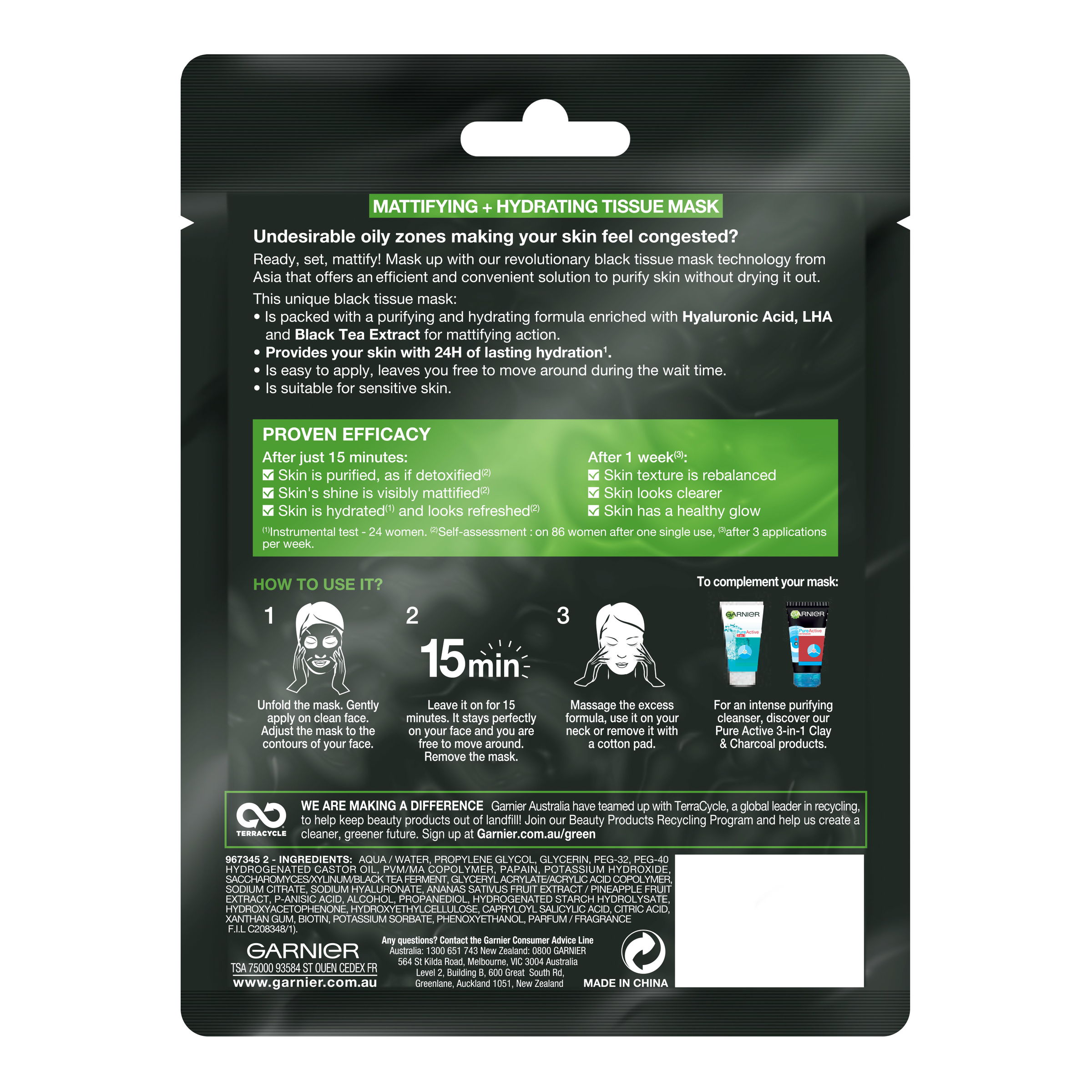 Garnier Pure Charcoal Hyaluronic Acid + Black Tea Sheet Mask 28g